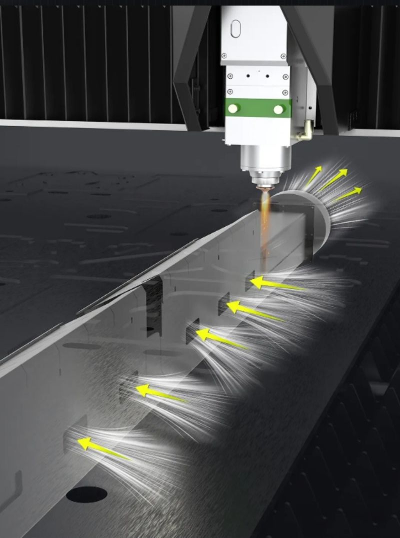 可有效減少板材變形和減少掛渣,延長(zhǎng)工作臺(tái)壽命