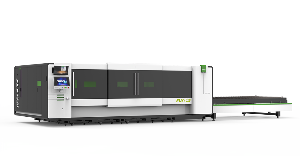 松谷激光科技FLY 系列飛速光纖激光切割機,高精度伺服電機搭配高精度傳動機構,采用包圍式外防護設計,配置 CE 防護玻璃安全窗.Y軸滑板采用鑄鋁一體成型,搭載一體式Z軸系統,采用雙層平移式交換臺。應用于:30mm不銹鋼激光切割、鋁合金激光切割