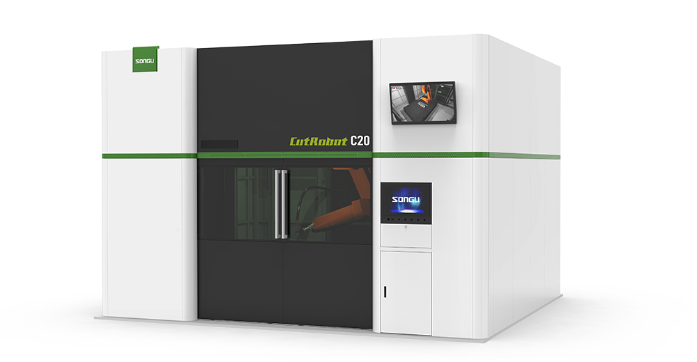 松谷激光科技CutRobot系列三維機(jī)器人光纖激光切割機(jī),搭載具有隨動功能的激光切割頭保護(hù)關(guān)鍵部件。高精度工業(yè)機(jī)器人,安全聯(lián)鎖設(shè)計。應(yīng)用于:金屬蓋板三維激光切割,金屬部件三維激光切割,汽車部件三維激光切割